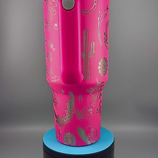 Saddle up in style with the Boho Babe Western 40 oz Tumbler — a perfect blend of rustic charm and feminine flair. Featuring a laser-engraved design of cowgirl boots and blooming florals, this tumbler is made for wild hearts and free spirits.