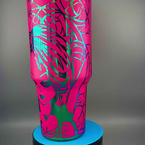 The Bride of Chucky 40 oz Tumbler is a killer companion for horror fans who love their beverages with a side of chaos. Featuring a laser-engraved image of Chucky and Tiffany — the twisted power couple of slasher cinema — this tumbler is perfect for sipping something sinister while showing off your love for horror and havoc.