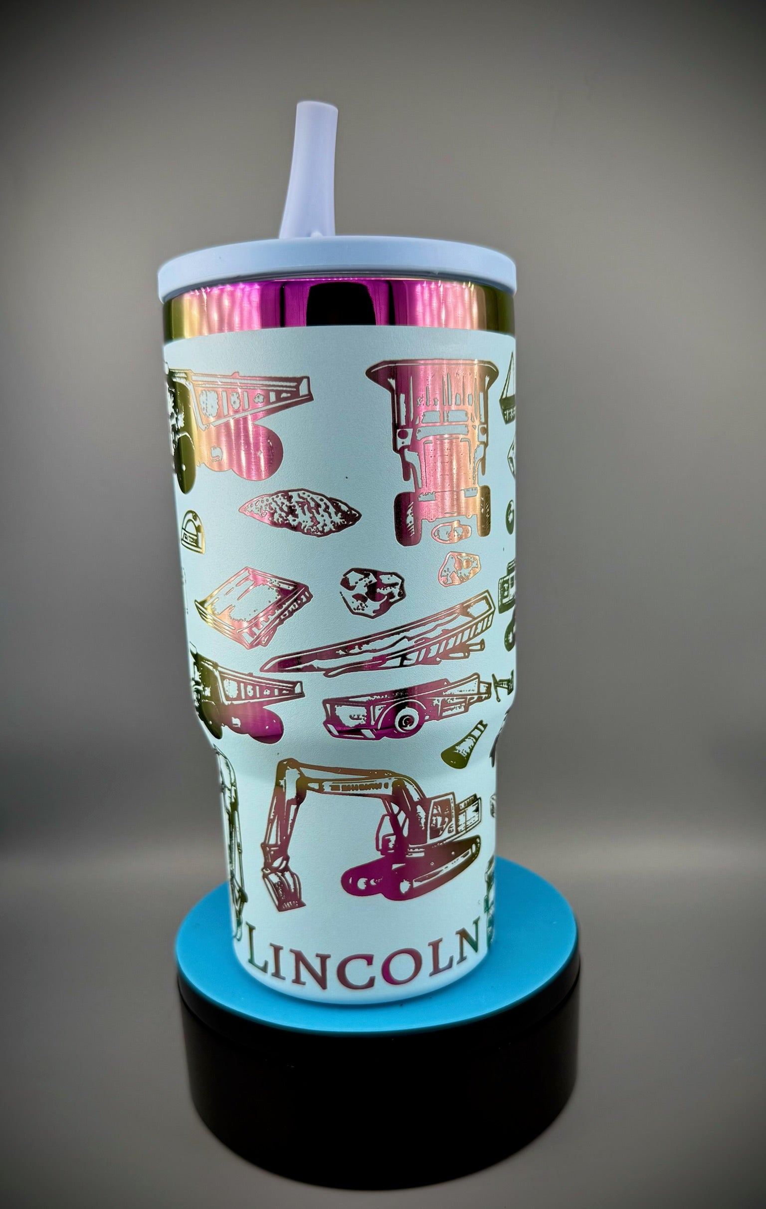 Excavator 20 oz Children's Tumbler – Metallic Engraved with Built-In Straw