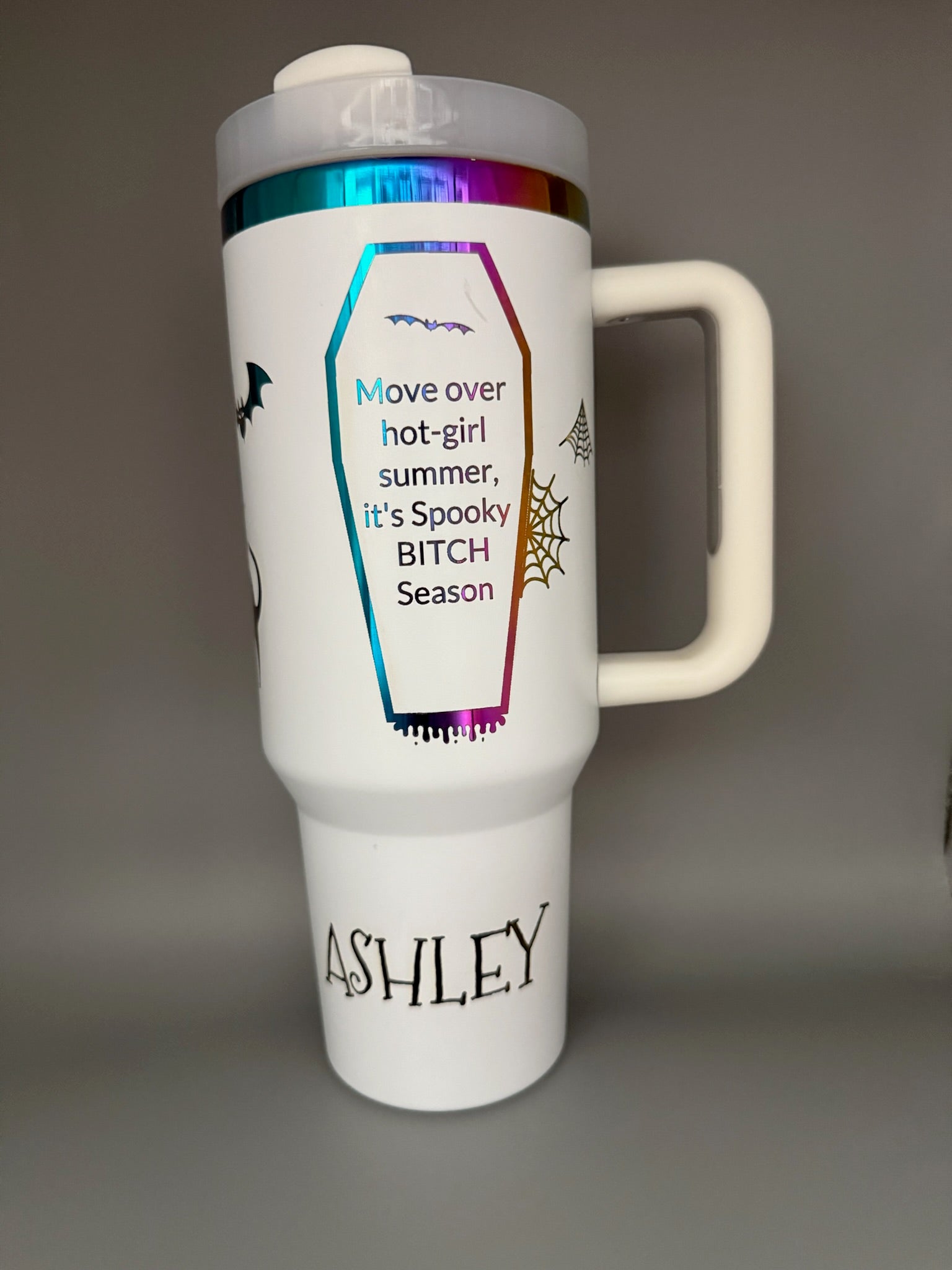40 Oz “Move Over Hot Girl Summer, It’s Spooky Bitch Season” Tumbler – Fierce, Festive, and Fully Customizable